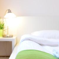 Номера гостевого дома WenderEDU оформлены в светлых тонах и обставлены деревянной мебелью.
