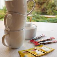 На стойке регистрации предлагается бесплатный кофе.