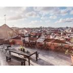 С террасы на крыше хостела открывается панорамный вид на крыши лиссабонских домов.