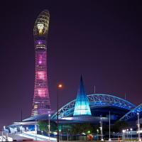 Этот дизайн-отель находится в факелообразном здании в Дохе и располагает вращающимся рестораном и панорамным видом на город.
