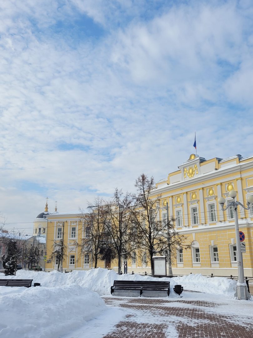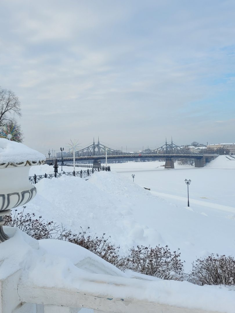 Город красивый,мосты,парки , центр еще в новогодних декорациях .