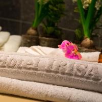 В собственной ванной комнате есть купальные халаты, фен и тапочки.