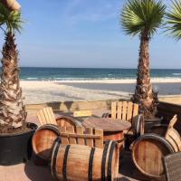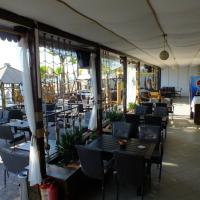 It offers views of the sea and guests can enjoy a meal at the restaurant or a drink at the bar.