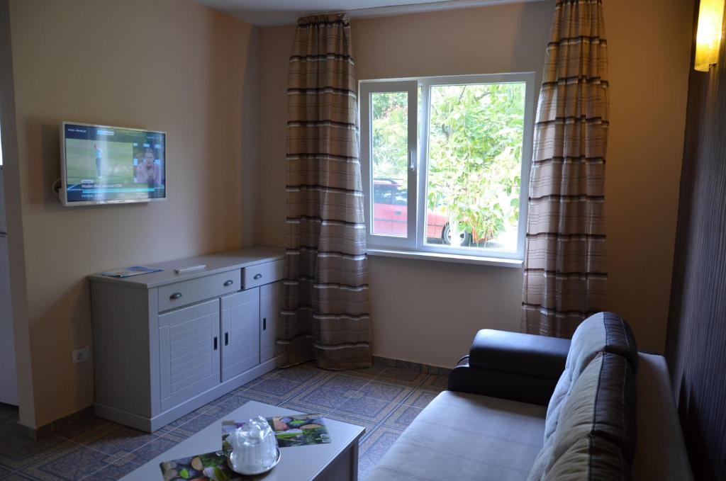В отеле можно остановиться в апартаментах и номере-студио с просторной гостиной с кондиционером и телевизором с плоским экраном, а также мини-кухней и собственной террасой.