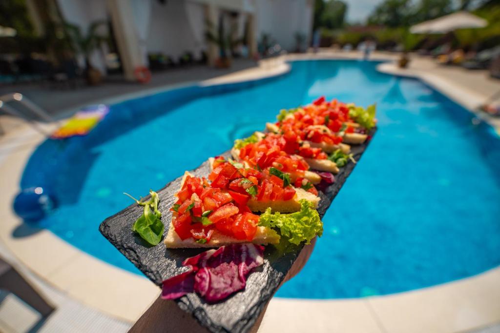 В теплое время года гости могут отведать блюда итальянской кухни на террасе у бассейна.