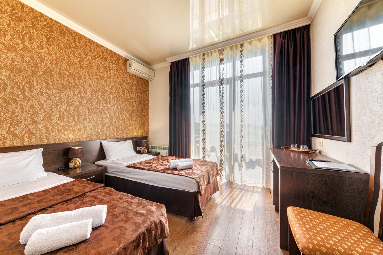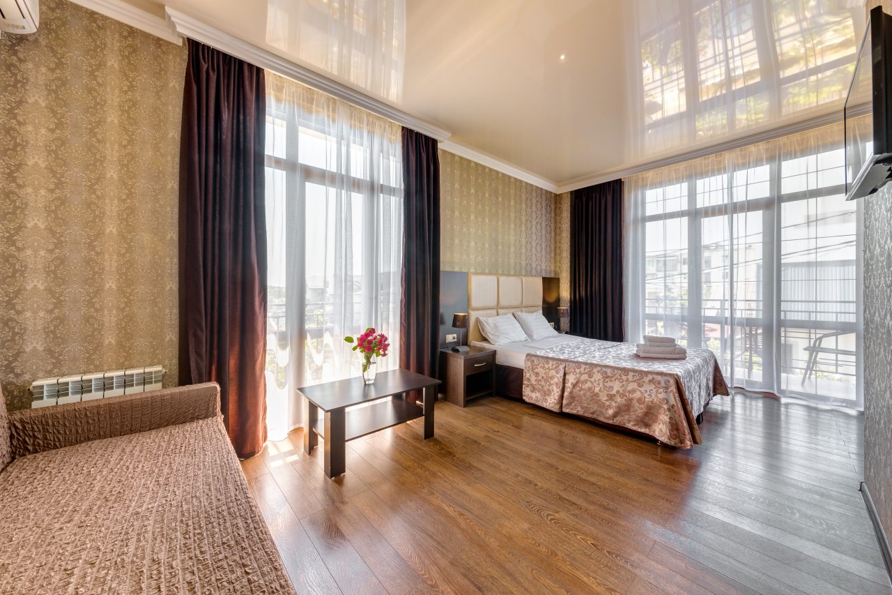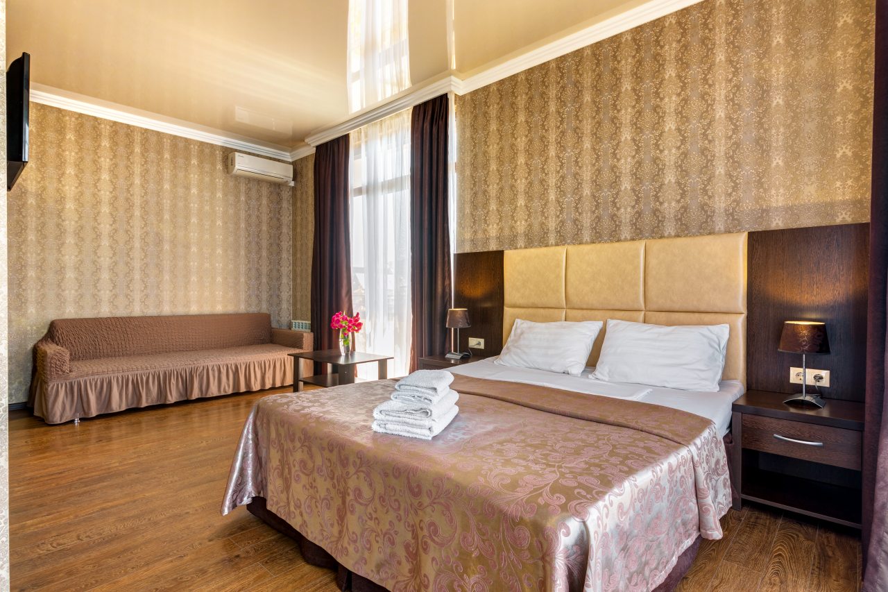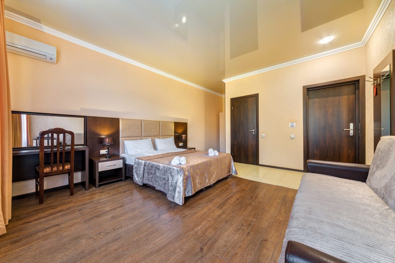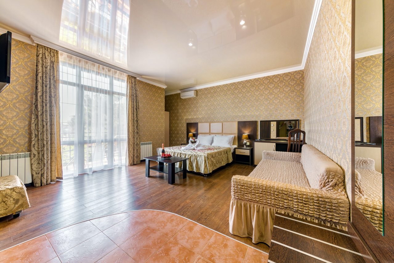 Гостиница или гостевой дом, как ни назови, все равно тут все супер комфортно. На территории много зелени, цветущие кустарники, очень классно. Есть балкон с садовой мебелью, можно отдыхать на воздухе. На территории своя столовая, бассейны, а еще мини-зоопарк. Дети в восторге, взрослые довольны!