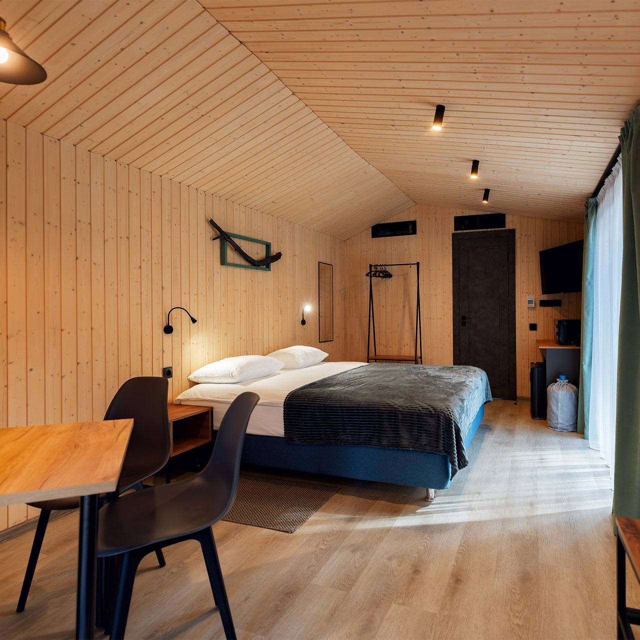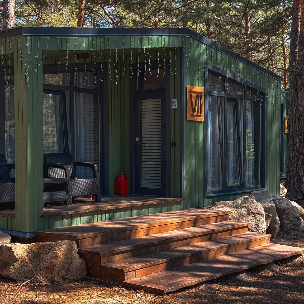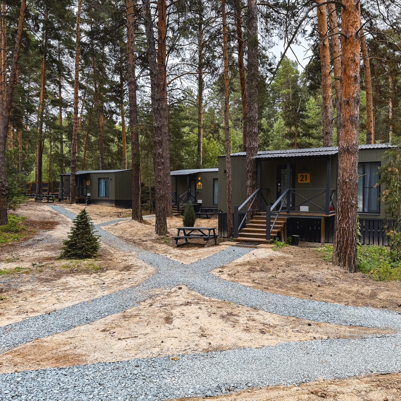 Гости живут в комфортабельных индивидуальных или гостевых домах, которые обычно выполнены из деревянных материалов. В них имеется весь набор современной техники и мебели, санузел и даже кухня.