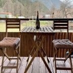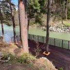 Домик довольно уютный . Есть всё необходимое, чистое постельное бельё. Очень чистая посуда на 4 персоны. Нам всего хватило. Вдали от суеты, прекрасный вид с балкона, подвесная качель, речка шумит внизу, умиротворяет. Милая кошечка приходила к нам в гости. Довольно тихо, но это, думаю, потому, что у нас справа не было соседей, а соседи слева с утра съехали.