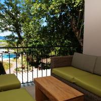 Небольшой отель. Понравилась тишина и покой. Есть сад. Воздух великолепный. Пляж рядышком. Не очень далеко продаются продукты. Номер отличный. Современный интерьер в эко-стиле.