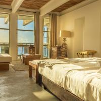 Номера на побережье расположены вдоль пляжа с белым песком, а с их террас открывается вид на залив.