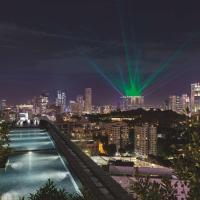 The hotel boasts an infinity-edged pool, outdoor dining and panoramic city views from its spacious rooftop space.