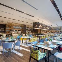 It features two outdoor swimming pools and guests can choose from the 14 dining options in the premises.