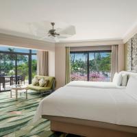 Современный отель Shangri-La Rasa Sentosa, Singapore (SG Clean) с панорамным видом на Южно-Китайское море расположен на пляже Силосо в окружении тропического пейзажа.