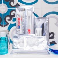 Each room has a private bathroom with toiletries such as complimentary toothbrush and toothpaste.