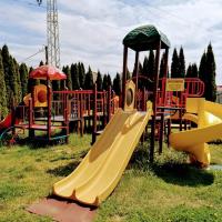 Нам достался красивый номер в коричневой цветовой гамме. В ресторане отеля подают разнообразные блюда армянской кухни. В отеле можно пройти массажные процедуры, сходить в сауну. Для детей на территории отеля есть детская площадка.
