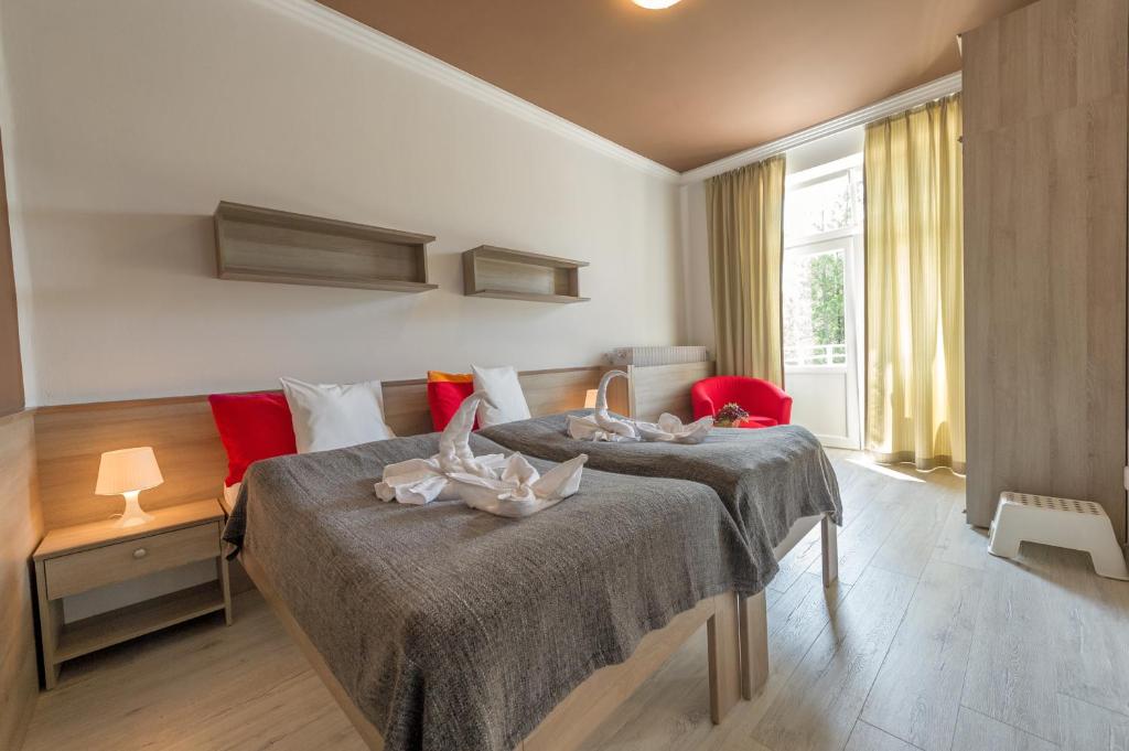 Отель Kúpele Štós очень стильно и современно оформлен. Наш номер был очень стильным и уютным. В отеле есть замечательный крытый бассейн, сауна. Мне понравилось в отеле еще то, что для детей есть множество развлечений. Детские игровые комнаты, множество книг, детской музыки.