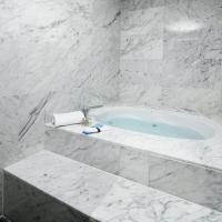 В собственной ванной комнате установлен туалет с электронным биде; имеются тапочки, бесплатные туалетно-косметические принадлежности и фен.