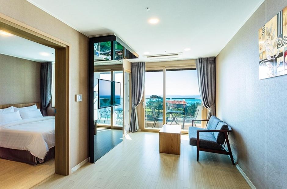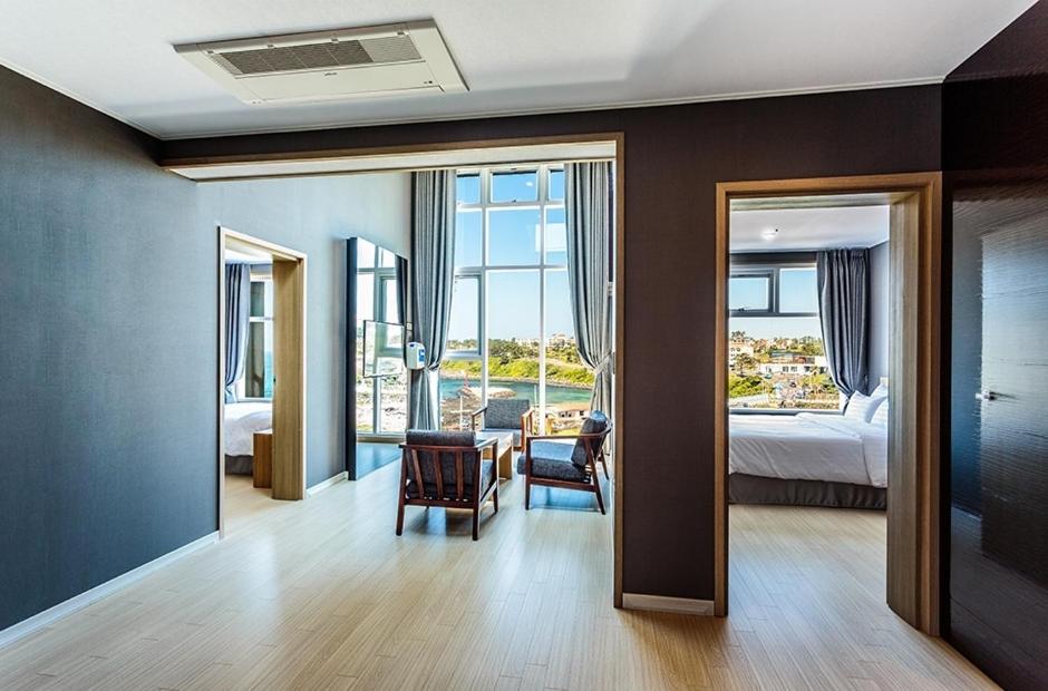 Пляж Куакчи находится в 15 минутах езды на запад, а международный аэропорт Чеджу — в 45 минутах езды на восток.