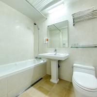 Собственная ванная комната с ванной и душем укомплектована феном и бесплатными туалетно-косметическими принадлежностями.