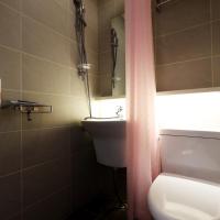 Собственная ванная комната с душем укомплектована бесплатными туалетно-косметическими принадлежностями.