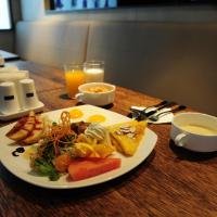 Каждое утро, кроме воскресенья, в кафе отеля Hello K-pop сервируется американский завтрак.