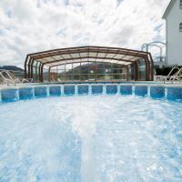 К услугам гостей крытый бассейн с шезлонгами посреди ландшафтных садов.