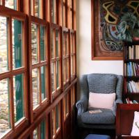 Гости могут отдыхать в библиотеке с камином и купаться в плавательном бассейне.