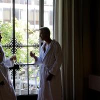 Здание отеля сохраняет свои исторические черты, такие как столбы в стиле барокко и красочные керамические полы.