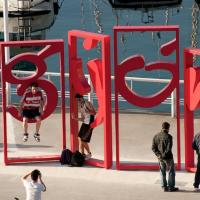Из бара на территории отеля Pasaje открывается вид на близлежащий порт Хихона.