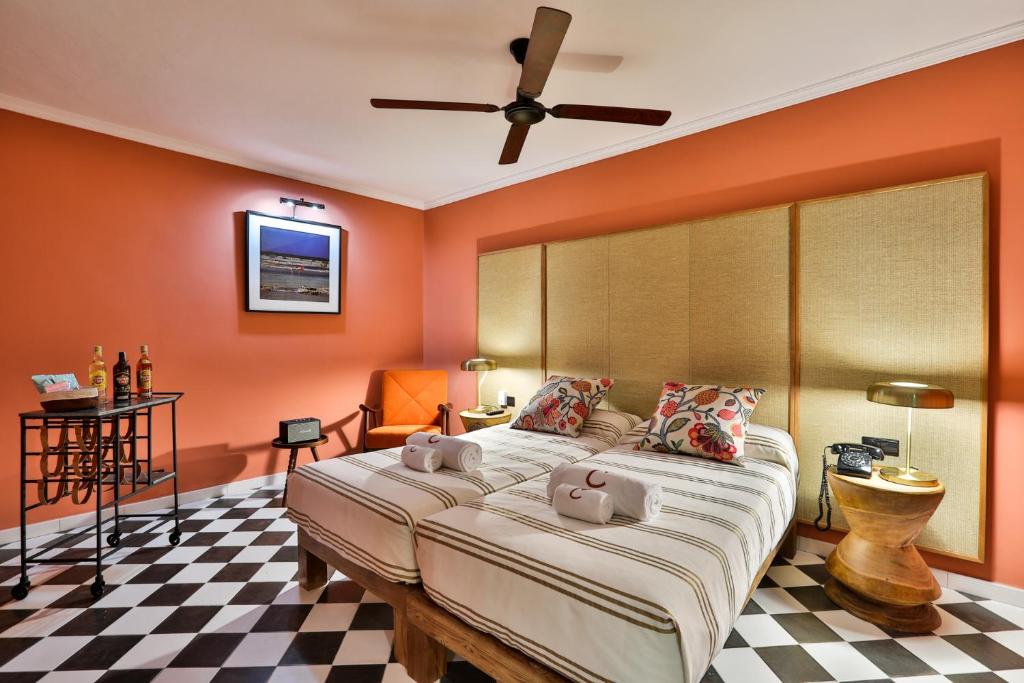 Все стильные номера, оформленные в кубинском стиле, укомплектованы холодильником Smeg и колонками Marshall.