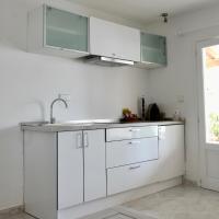 Мини-кухня оснащена холодильником, плитой и кофеваркой.