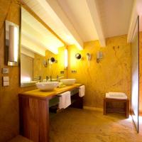Ванная комната укомплектована банным халатом и туалетно-косметическими принадлежностями Bulgari.