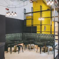 В общем лаундже, оформленном в стиле индастриал, можно посмотреть телевизор, почитать или посетить ежедневные выступления диджевв.
