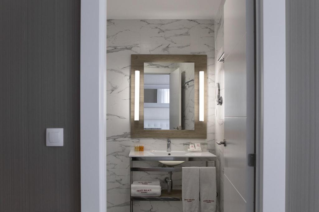 Отель Petit Palace Opera занимает историческое здание с такими старинными элементами, как французские окна и отделанная мрамором стойка регистрации.
