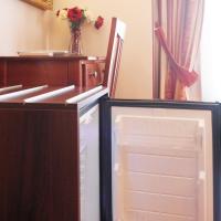 В числе удобств телевизор с плоским экраном, сейф, незаполненный холодильник и собственная ванная комната.