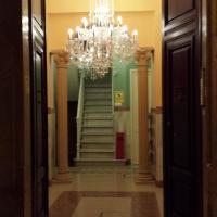 Историческое здание сохранило свой оригинальный стиль, включая скошенные потолки с деревянными балками, мраморные лестницы и люстры.