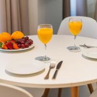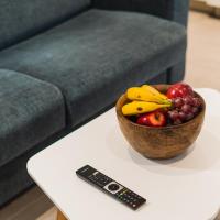 В числе удобств апартаментов кондиционер, а также гостиная и обеденная зоны.