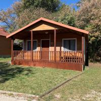 Гости кемпинга могут отдохнуть на небольшой веранде перед бунгало.