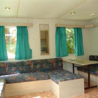 Во всех деревянных бунгало и мобильных домиках с отоплением есть гостиная/обеденная зона с диваном-кроватью и телевизором.