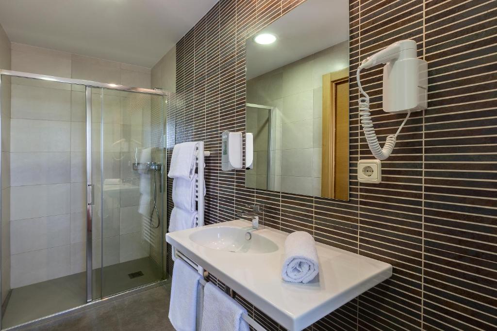 Просторные номера отеля Santamaría оформлены в мягких тонах и располагают климат-контролем, собственной ванной комнатой и элегантным деревянным полом.