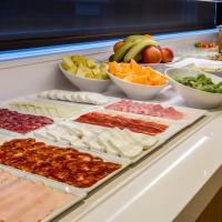 По утрам для гостей сервируют завтрак «шведский стол» с фруктами, зерновыми хлопьями, яйцами, испанским омлетом, мясным ассорти и свежей выпечкой.