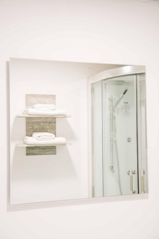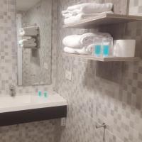 Собственная ванная комната с душем укомплектована бесплатными туалетно-косметическими принадлежностями.