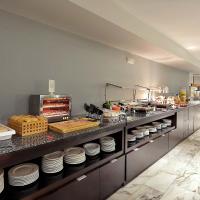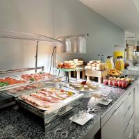 Каждое утро в ресторане отеля с прекрасным видом на Олимпийский стадион Севильи подают завтрак "шведский стол".