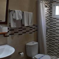 Номера гостевого дома Alamare с кондиционером, телевизором и собственной ванной комнатой оформлены в строгом стиле.