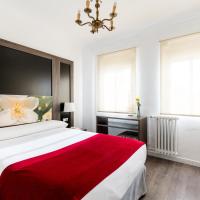 Номера отеля Sevilla оформлены в строгом современном стиле, а пол в них выполнен из дерева.