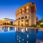 Яркая полукруглая архитектура отеля напоминает древние римские театры, создавая впечатляющую роскошную атмосферу.