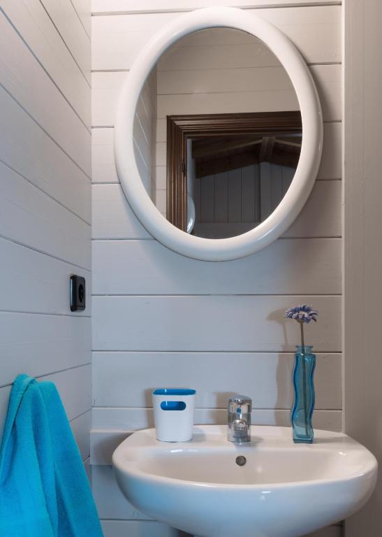 Бунгало в кемпинге Torre de la Mora оборудованы гостиным уголком, диваном-кроватью, телевизором и собственной ванной комнатой.