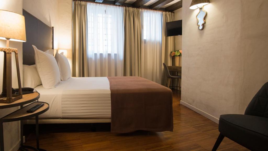 В отеле Abad Toledo сочетаются современные удобства, в том числе бесплатный Wi-Fi, и такие оригинальные черты, как деревянные балки и каменные стены.