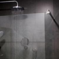 Собственная ванная комната с душем укомплектована косметическим зеркалом, феном и туалетно-косметическими принадлежностями.