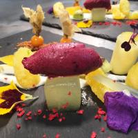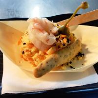 В ресторане подают ужин с разнообразными традиционными блюдами из риса и свежих морепродуктов.
